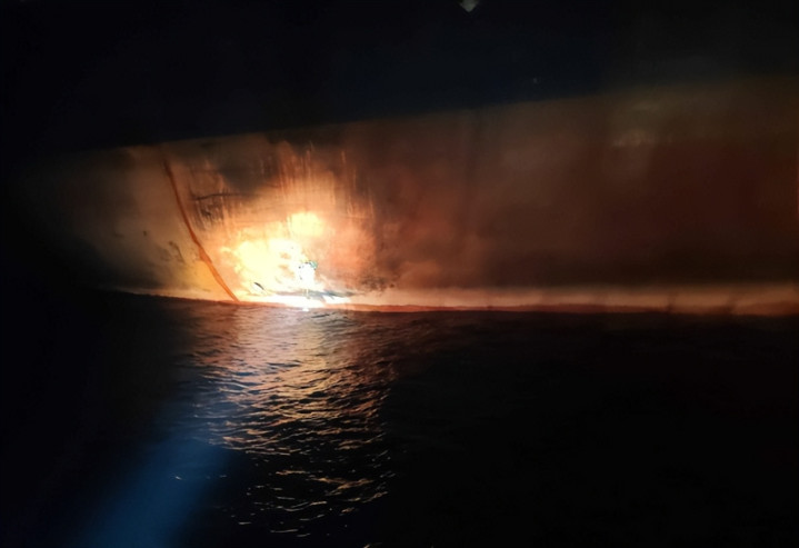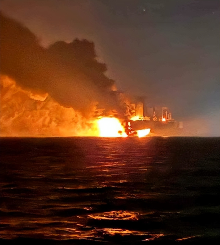 最先传出异常的是土耳其海事总局的紧急通报。当地时间28日晚,一艘悬挂冈比亚国旗的“凯罗斯”号油轮,在距离土耳其海岸线28海里处突发爆炸并起火,另一艘同属冈比亚籍的“维拉特”号,在35海里外也报告遭遇爆炸。土耳其救援船队紧急出动,才发现这不是意外事故——油轮船身有明显的撞击爆炸痕迹,现场残留着小型无人艇的碎片。