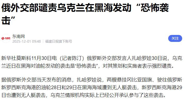 俄罗斯的反应则强硬得多。外交部发言人扎哈罗娃直接定性这是“恐怖袭击”,谴责乌克兰是“国际恐怖新纳粹细胞”。对俄罗斯来说,这或许是个“送上门的借口”。黑海每年承担着俄罗斯30%的石油出口,新罗西斯克港更是关键枢纽。