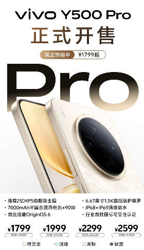 祥云金、浅绿等四款颜值配色,搭配7.81mm轻薄机身,vivo Y500 Pro拿在手里既是拍摄工具也是时尚单品。今天正式开售的它,无疑是热爱生活的人的影像神器,想把日常过成高清大片的你,千万别错过。